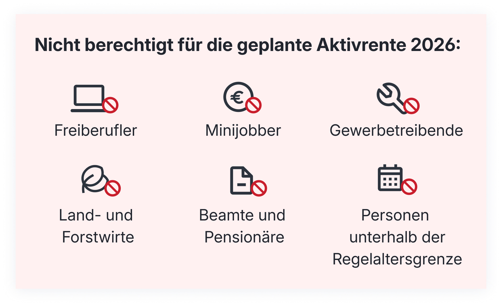 Der Bonus gilt nur für sozialversicherungspflichtige Beschäftigungen. Alle anderen Arbeitenden im Rentenalter gehen leer aus. Kritiker nennen das ungerecht und unzureichend, gerade für jene, die häufig im Ruhestand ein geringes Einkommen haben.