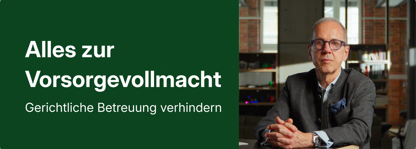 In Zusammenarbeit mit Notar & Rechtsanwalt Dr. Andreas Lohmeyer haben wir einen Leitfaden für Sie entwickelt, der Ihnen Schritt für Schritt erklärt, wie Sie gesetzliche Betreuung verhindern können.